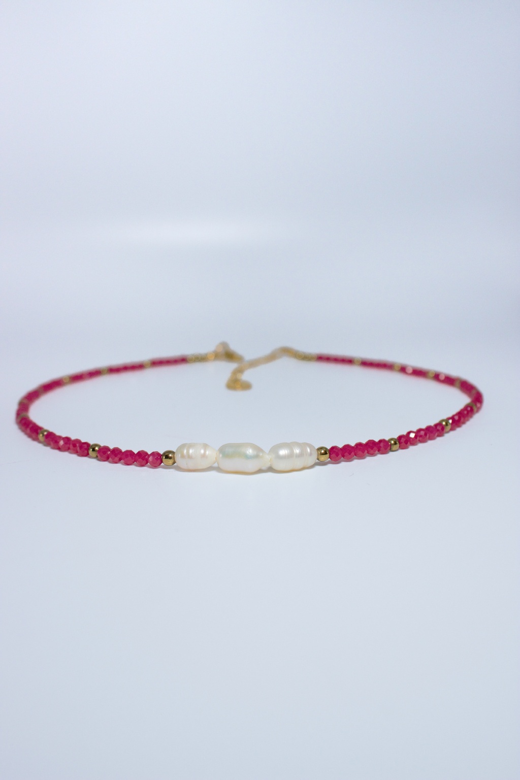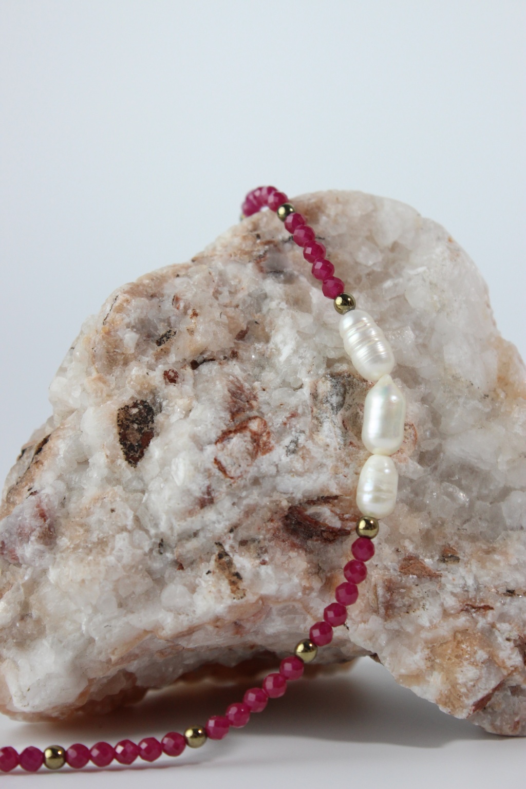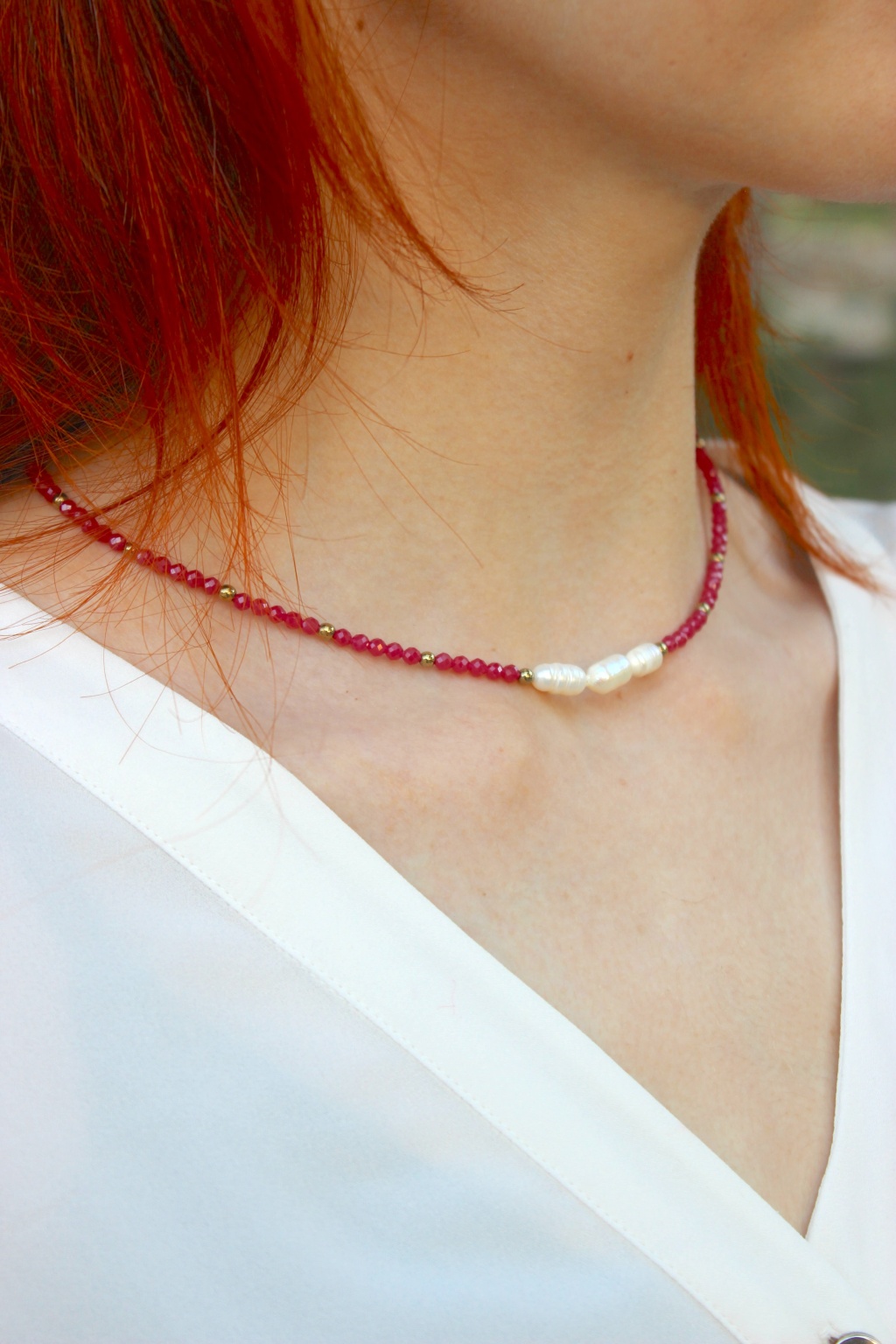 Yakut, tutkunun hiç sönmeyen alevi olmuş; inci, özlemin ışıltısı…İşte bu kolye de o aşkın sembolüdür.