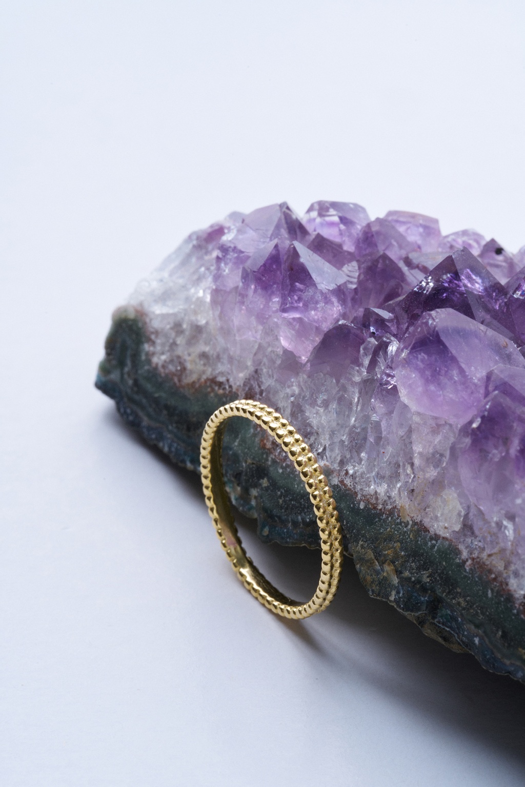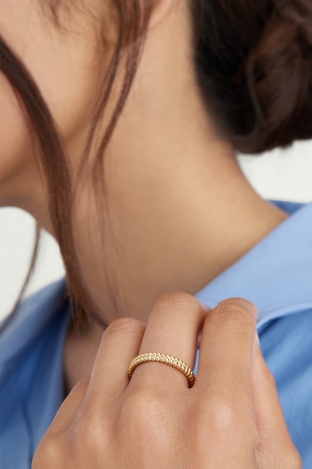 Double Dotted Gold 925 Ayar Gümüş Yüzük
