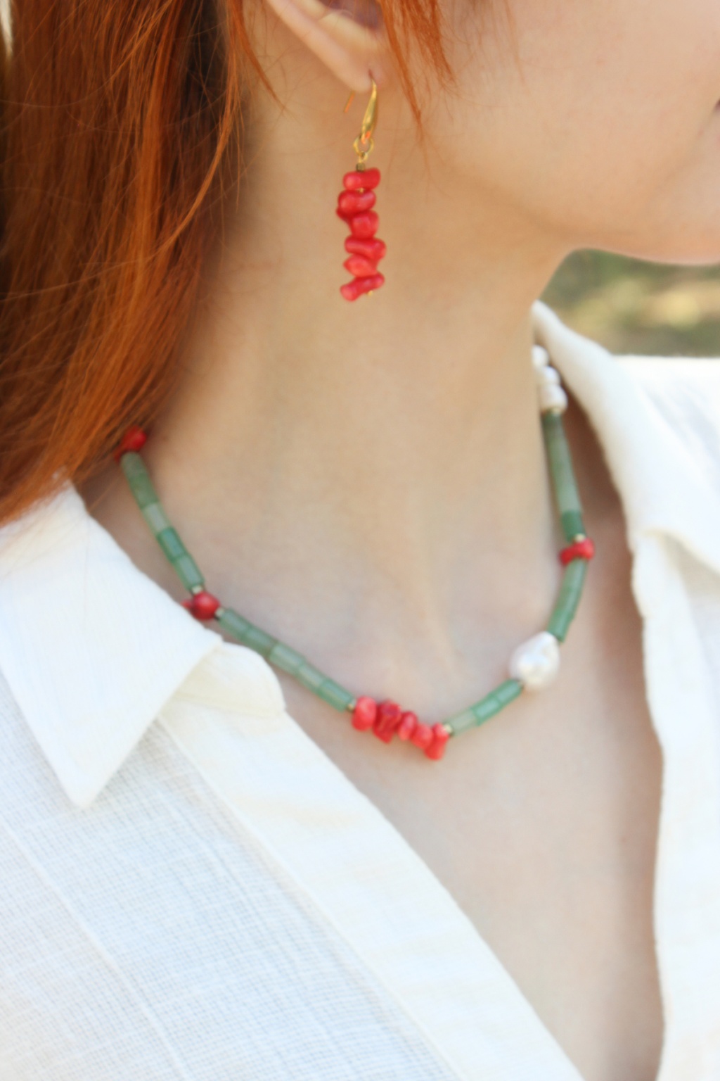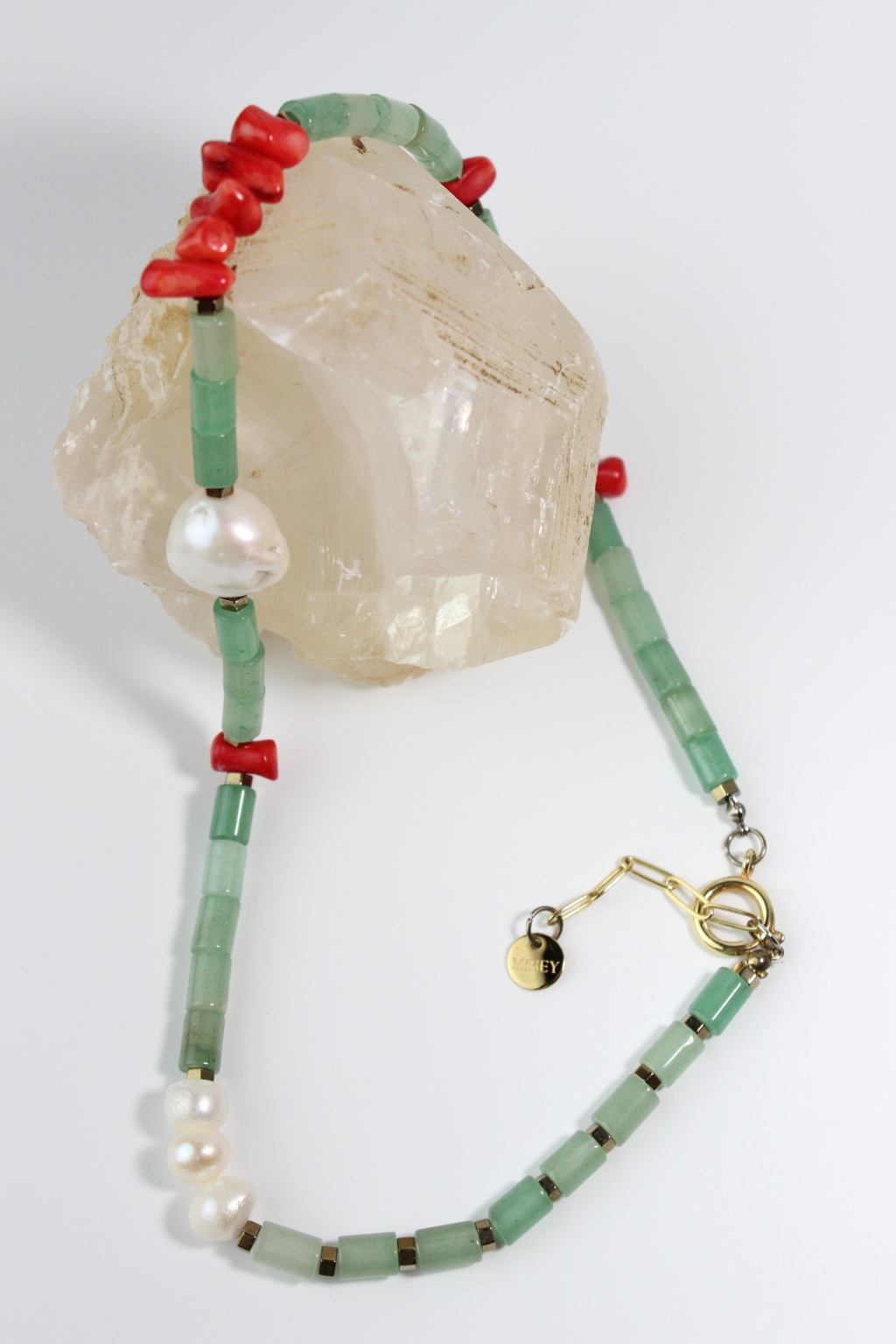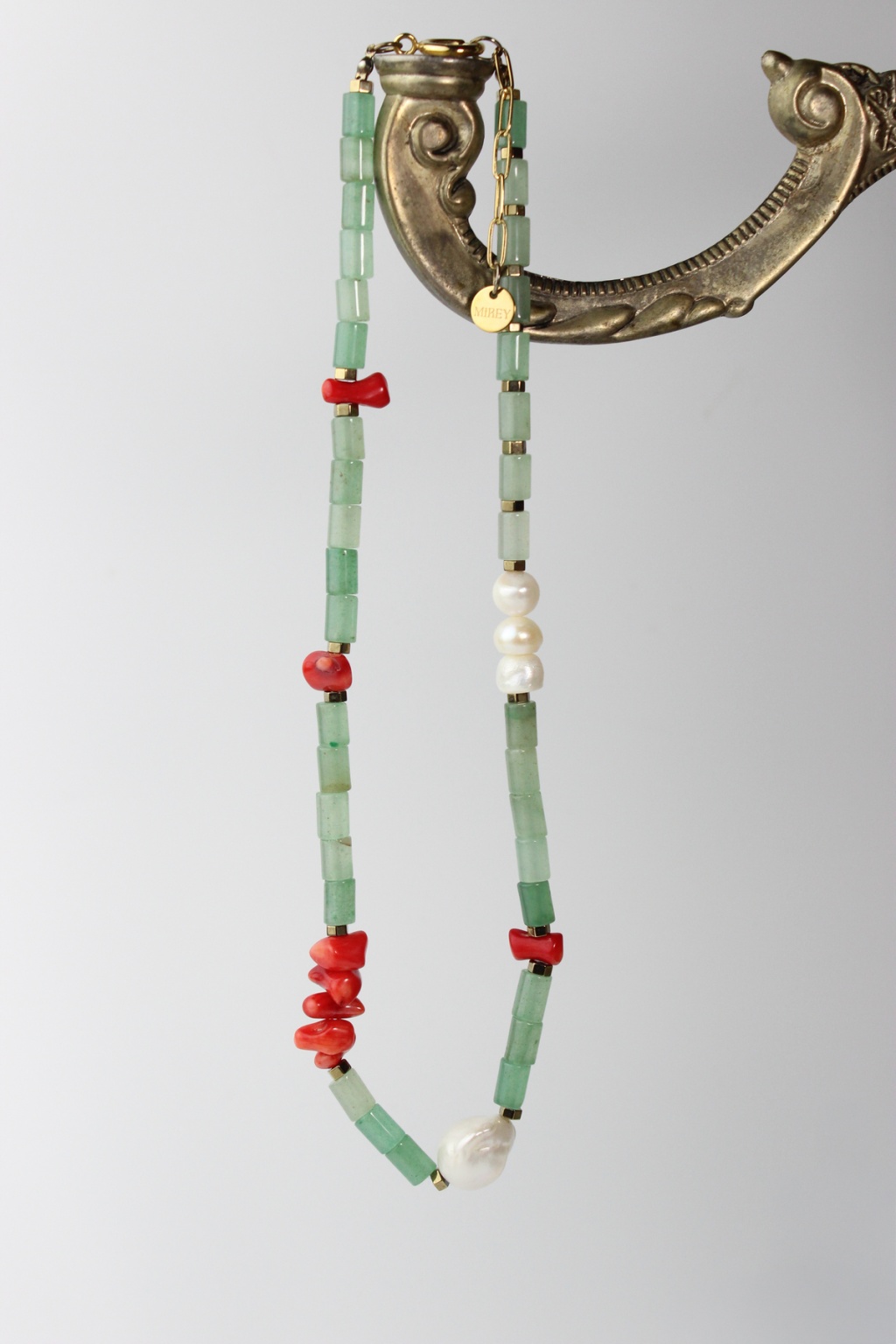 Özgün, renkli ve doğal taşlardan hoşlanan biriyseniz bu ürün tam sizin için. Enerjik bir tasarıma sahip olan Luna Kolye aventurin, kırmızı mercan ve incinin bir arada kullanılması, kolyeye hem doğal hem de zıt renklerin uyumunu taşıyan benzersiz bir hava katıyor.
