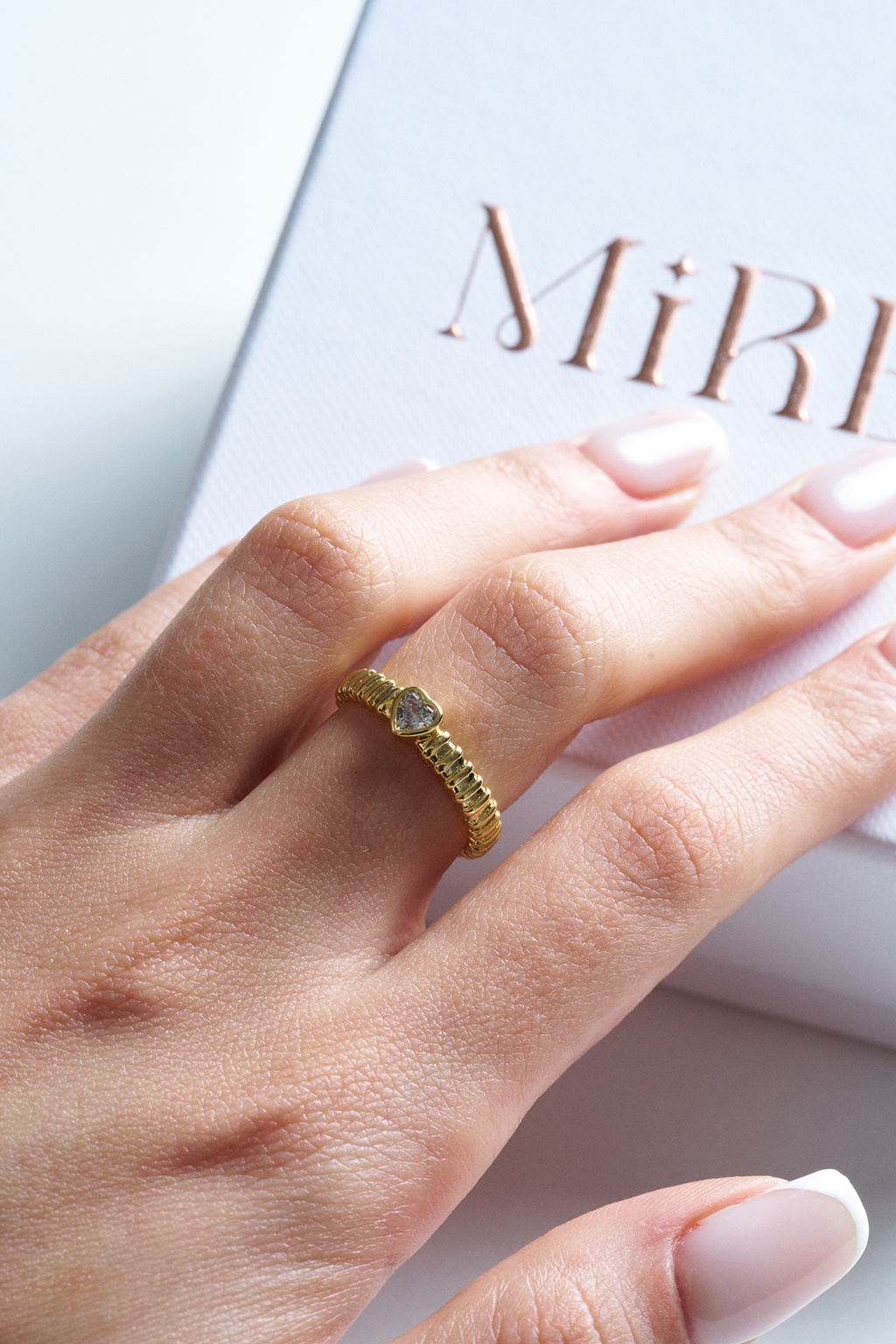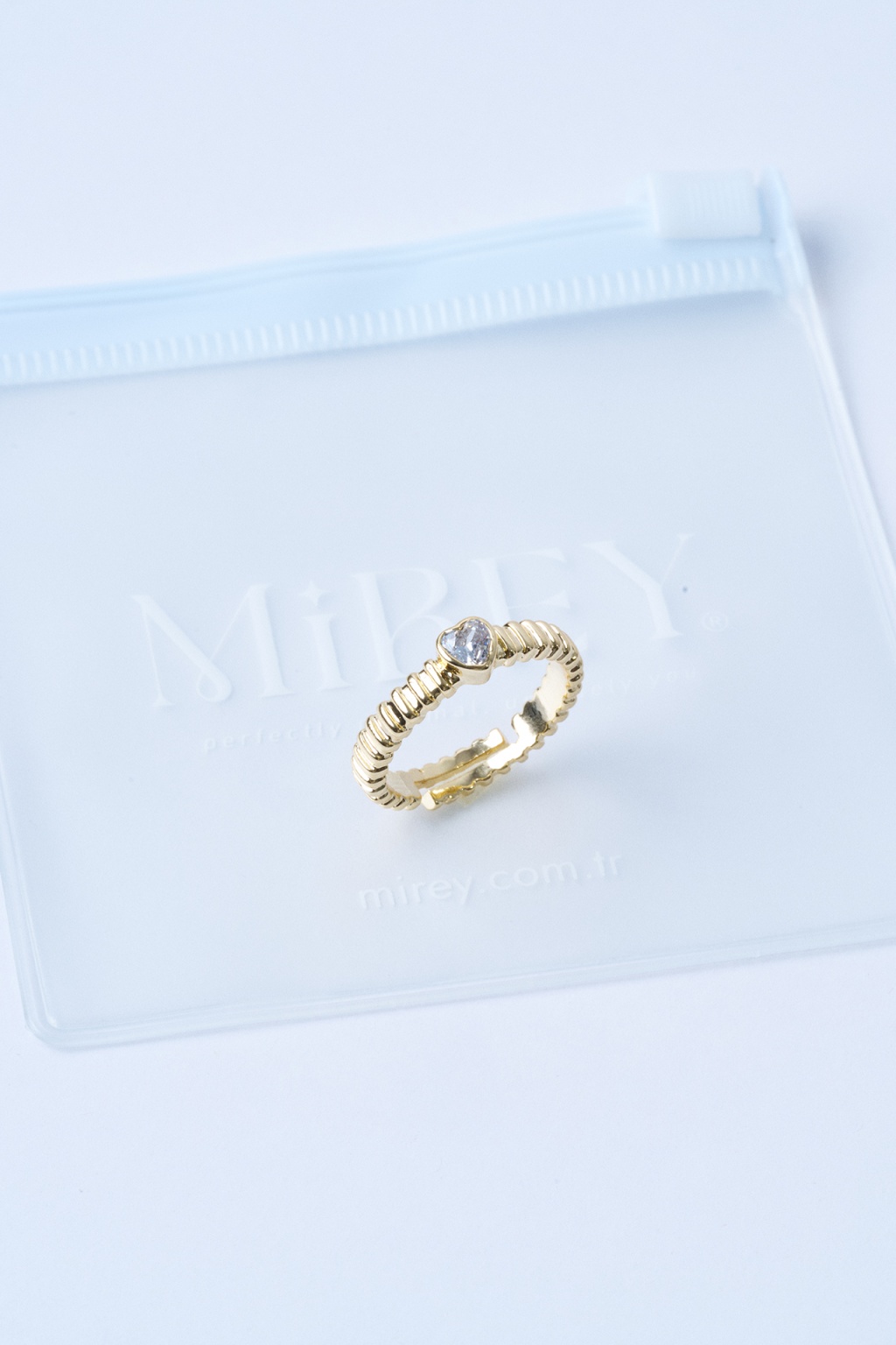 Taş Kalpli Gold Ayarlanabilir Çelik Yüzük