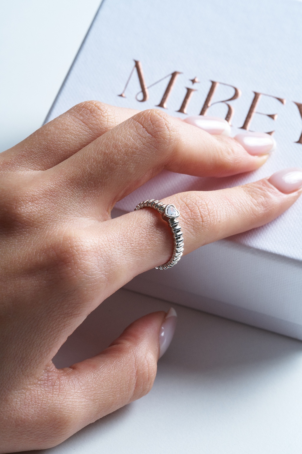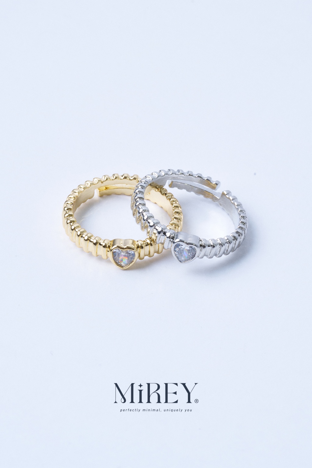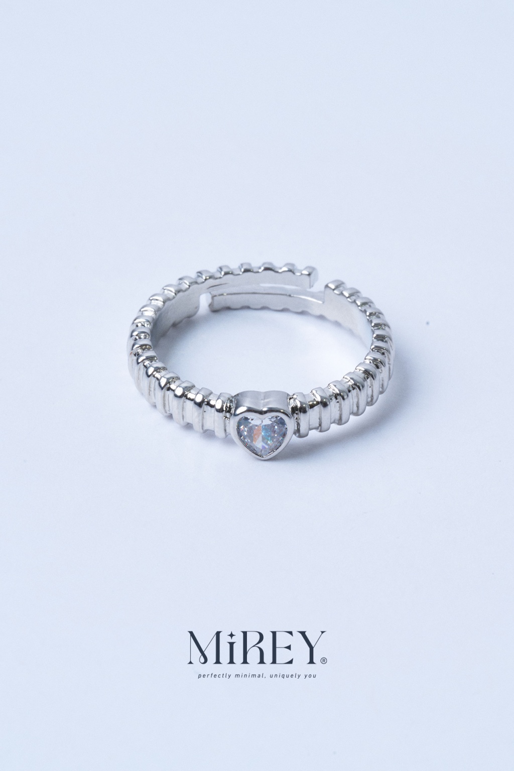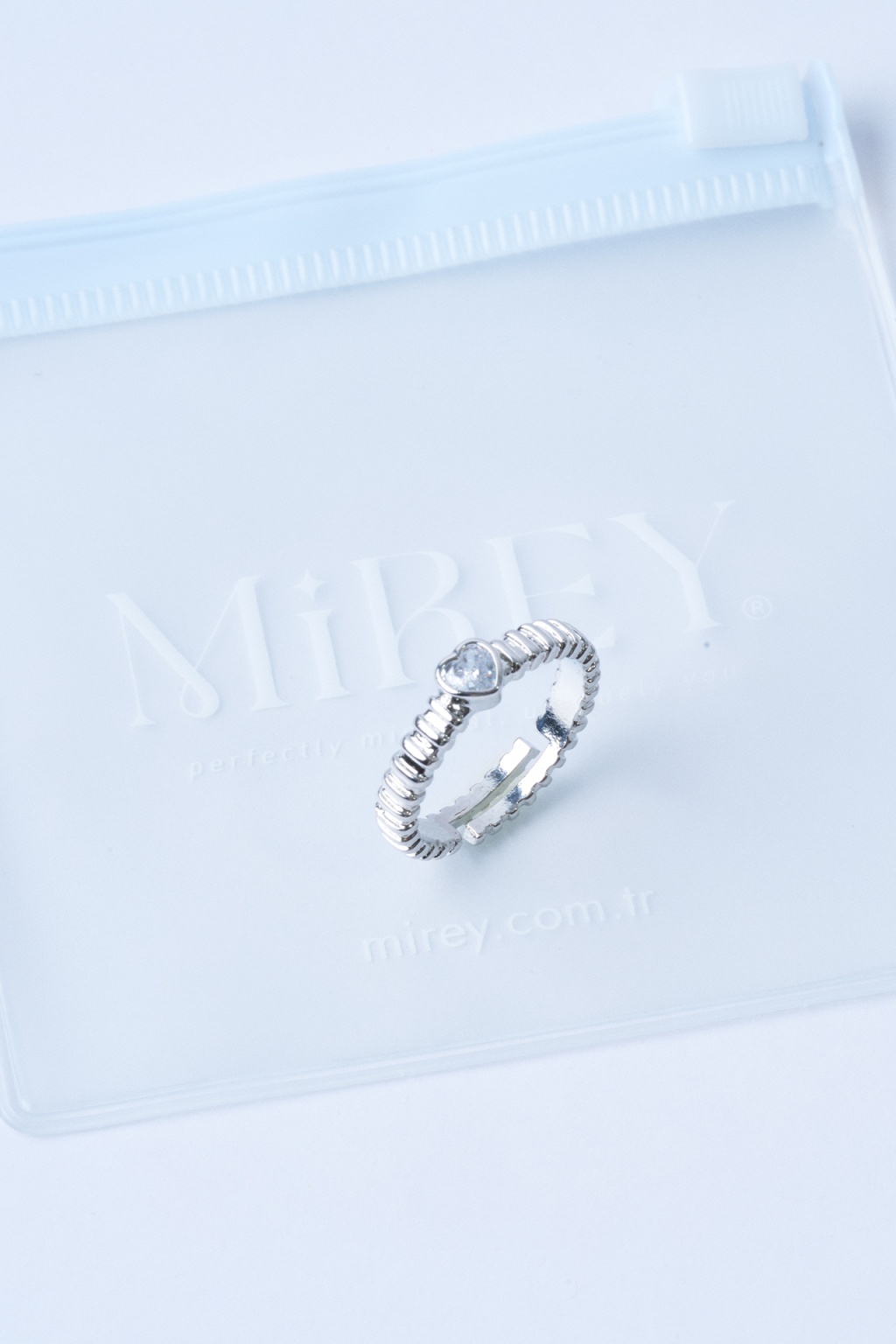 Taş Kalpli Silver Ayarlanabilir Çelik Yüzük