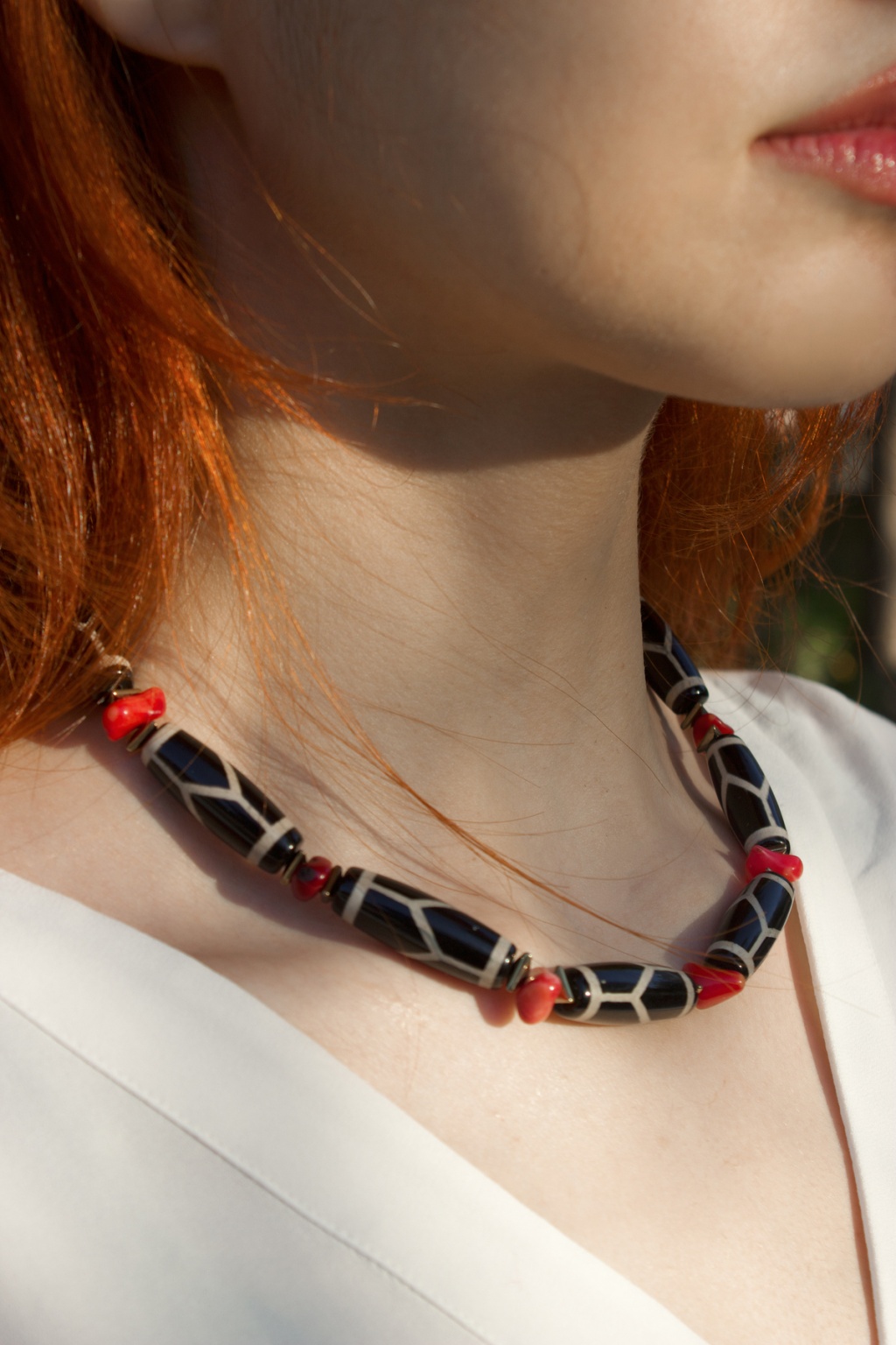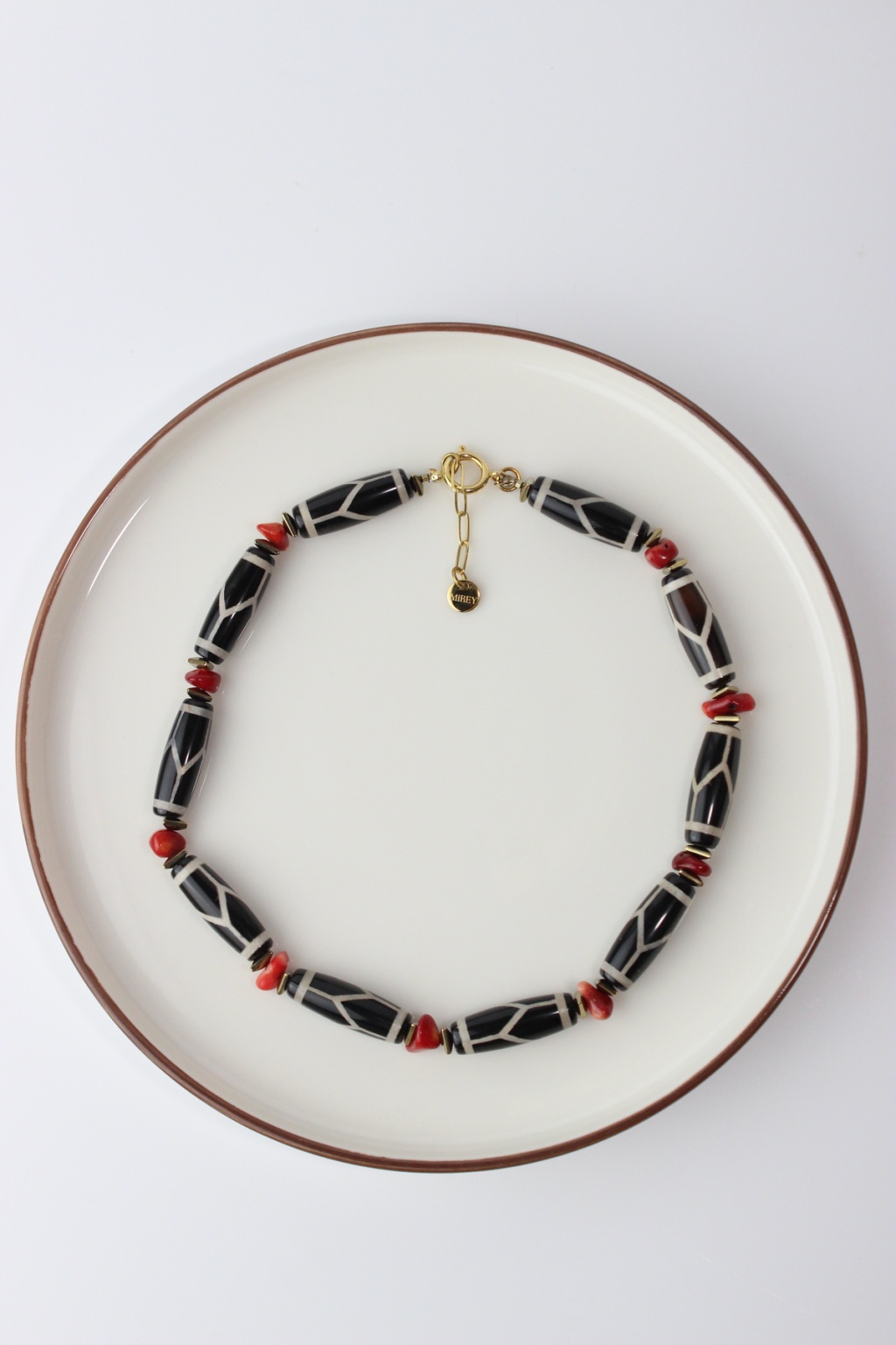 Tibetan Harmony Kolye • Uzunluk: 4cm • Tibet Akik • Kırmızı Mercan • Gold çelik aparatlar (Paslanma, kararma ve alerji yapmamaktadır.; ) • %100 El yapımı Tibet akik, mercan ve hematitin uyumuyla tasarlanan bu zarif kolye; denge, koruma ve içsel güç enerjilerini bir araya getirir.; Günlük stile şıklık ve mistik bir dokunuş katar.; Kullanım Talimatı: Koleksiyonumuzda inci ,lapis lazuli ,mercan, yeşim, sodalit, ametist, akuamarin, akik, gibi doğal taşlar ve altın kaplama parçalar kullanıldığı için aksesuarların su, parfüm, krem ve alkol ile temasından kaçınılmalıdır.; Takılarınızı, ürün ile birlikte gönderdiğimiz özel Mirey® kutusunda veya kesesinde muhafaza etmenizi öneririz.; Kullanılan doğal taşların her biri kendine has özellik gösterdiği için ürünlerimizde ufak tefek farklılıklar olabilir.;